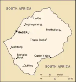 | Hovedstad og største by | Maseru 29°18′S 27°28′Ø / 29.300°S 27.467°Ø |