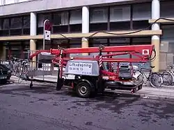 For det meste en lift til 1-3 personer monteret på en lastbil. De større modeller rækker ofte 10-50 m opad, og den kran der er grundelementet i køretøjet kan bevæge sig i tre dimensioner, hvilket gør at bilen sjældent skal flyttes under arbejdet.