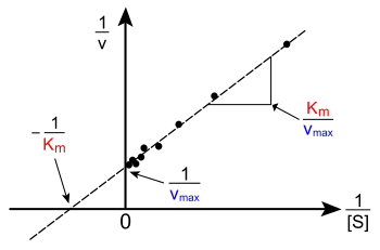 - ↑ Lineweaver, H and Burk, D. (1934). "The Determination of Enzyme Dissociation Constants". Journal of the American Chemical Society. 56 (3): 658-666. doi:10.1021/ja01318a036.
