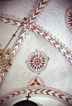 Koret fik indbygget krydshvælv i sengotisk tid, korbuen er ombygget men er stadig rundbuet og har nederst bevaret kvaderstensvangerne, skibet har fladt træloft fra ombygningen i 1866. I korhvælvet har man afdækket sengotiske kalkmalerier af den såkaldte Liljemester, der nærmest må opfattes som en fællesbetegnelse for jyske håndværksmalere i begyndelsen af 1500-tallet, den noget skematiske lilje nederst i hvælvkapperne ses i mange jyske kalkmaleridekorationer fra denne periode. I østkappen ses en noget naiv fremstilling af Livshjulet med de fire konger, der vil blive konge, er konge, har været konge og engang var konge, et Memento Mori (:husk du skal dø) om livets forgængelighed, desuden ses skematisk udførte rosetter. Kalkmalerierne blev restaureret af E. Lind i 1961. Den kalkmalede dekoration på triumfvæggen er udført af Johan Thomas Skovgaard i 1924, motiver er "Ligesom en hjort skriger efter vand," omkring korbuen står to hjorte, der drikker af vandet som udstrømmer fra korset over korbuen. Altertavlen er en kopi efter Bloch fra 1893. Prædikestolen er fra omkring 1600. En Mariafigur fra en sengotisk krucifiksgruppe er opsat på skibets vestvæg. Den romanske granitfont har glat kumme med tovsnoning omkring mundingsranden, den firkantede fod har kraftige hjørneudsmykninger.