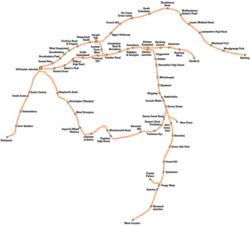 - North London Line – Richmond til Stratford (strækningen fra Stratford til North Woolwich lukkede den 9. december 2006 og en del heraf er nu blev genbrugt til DLR).[24]