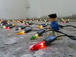 Lyskæder bruges på juletræer og udendørs på husgavle. I Danmark kan det første indendørs juletræ med elektrisk lyskæder spores tilbage til et fotografi fra 1910.[1]