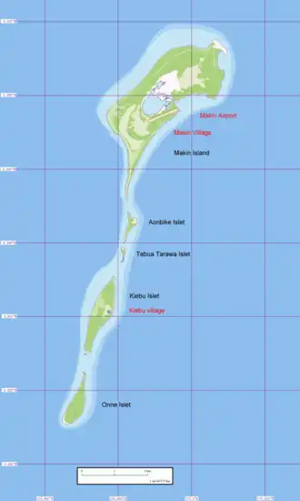 Makin Airport, som ligger umiddelbart nordøst for hovedstaden mellem lagunen og havet har ICAO kode NGMN og IATA kode MTK.
