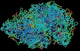 En makromolekyle er en meget stor molekyle, såsom protein, ofte skabt ved polymerisering af mindre underenheder (monomerer). De består typisk af tusinder eller flere atomer. De mest almindelige makromolekyler indenfor biokemien er biopolymerer (nukleinsyrer, proteiner, kulhydrater og polyfenoler) og store ikke-polymeriske molekyler (såsom lipider og makrocykler).[1] Blandt syntetiske makromolekyler er almindelig plast og kunstfibre såvel som eksperimentelle materialer såsom kulstof-nanorør.[2][3]