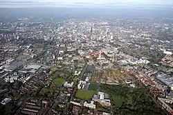 - ↑ Den første der blev inkluderet var Wythenshawe, som blev en del af byen i 1931.