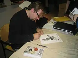 - Assistent, der tegner blyantstegningerne op med tusch.