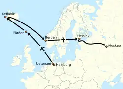 Rust startede i Uetersen ved Hamburg og fløj derefter til Island via Færøerne og derefter over Norge til Finland, hvor han landede i Malm Lufthavn i Helsingfors den 25. maj 1987, og efter en optankning fortsatte sin flyvning mod Moskva. Han forlod finsk luftrum via Sibbo skærgård ved at opgive Stockholm som sin destination til flyveledelsen. I Finland blev der omgående indledt en redningsaktion, da han som følge af meget lav flyvehøjde forsvandt fra radaren. I operationen deltog bl.a. redningsfartøjer fra Det Finske Grænsegendarmeri.