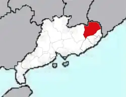 - Amtet Fengshun (丰顺县), 2.710 km², ca. 660.000 indbyggere;
