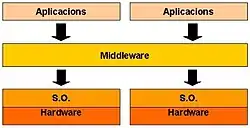 - ↑ azure.microsoft.com: Hvad er middleware? Citat: "...Middleware er en software, der ligger mellem et operativsystem og de programmer, som kører på det. Eftersom det fungerer som et skjult oversættelseslag, aktiverer middleware kommunikations- og dataadministration til distribuerede programmer. Det kaldes nogle gange rørarbejde...", backup