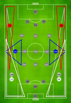 På mange hold ses det, at der benyttes to defensive midtbanespillere, så den ene kan hjælpe lidt ekstra til i angrebet. Det giver også muligheden for at klare truslen fra begge fløjspillere.