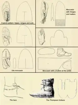 Kvinder holdt gerne familien med fodtøj,[6] og mødre lærte deres døtre at sy skindsko,[7] men en vigtig del af en krigers færdigheder var at kunne reparere eller sy sine egne mokkasiner på en lang krigsekspedition.[8] En indiansk sporfinder kunne på aftrykket af en mokkasin afgøre med en vis sikkerhed, hvilken stamme bæreren tilhørte.[9]