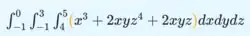 Et triple integral[12] er et bestemt integral af en funktion af tre reelle variable: [13]