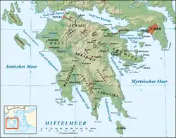 - Strabo skelner mellem Myrtoan og Ægæerhavet; Strabo skrev, at Det Ægæiske Hav sluttede ved udkanten af Sunium i Attica.