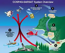 - ↑ "cospas-sarsat.org: Registering a 406 MHz Beacon". Arkiveret fra originalen 15. januar 2013. Hentet 3. februar 2013.