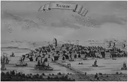 Befæstningsplan over Nakskov. Tegning af Georg Starcke, 1695. Sächsische Landesbibliothek - Staats- und Universitätsbibliothek Dresden (SLUB)