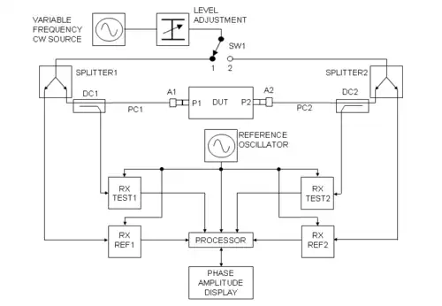 Testopsætning deler ofte kildesignal i to dele – hvor et ét anvendes som referencesignal. I en SNA, kan referencesignalet sendes til en diodedetektor (modtager) hvis output sendes sendes til signalgeneratorens automatiske styrkestyring (ALC – Automatic Level Control). Resultatet er bedre styring af signalgeneratorens output og bedre målenøjagtighed. I en VNA, sendes referencesignalet til modtagerne, da det behøves som en fasereference.