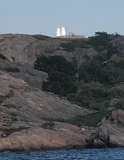 Helgøya er også kendt for de store varder på toppen av øen, motivet for Søgnes kommunevåben.