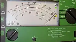 I traditionelle multimetre virkede ohmmetre på den måde, at et lille batteri i serie med en justeringsmodstand og et drejespoleinstrument kunne forbindes med en ukendt modstand. Før en måling kunne påbegyndes, skulle man (1) kontrollere at instrumentet pegede på "uendeligt" med åbne terminaler (2) kortslutte terminalerne og med justere til viseren pegede på nul. Herefter kunne man tilslutte den ukendte modstand til terminalerne. Ohmskalaen havde på denne måde en ulineært forløb, og adskilte sig fra Volt- og milliAmpereskalaerne ved at have nul ved fuldt udslag.