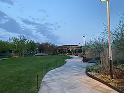 I parkens midte ligger en kombineret café- og servicebygning, der også fungerer som nedgang til parkeringshuset. I trapperummet står et 12 meter højt ficus-træ. Mellem servicebygningen og Operaen er der en overdækket gang, så gæster kan gå i tørvejr frem til forestillinger.[1]
