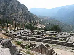 Omkring 750 f.Kr. rejstes i Delfi et tempel af sten. Kun respektable, midaldrende kvinder kunne gøre tjeneste som "Pythia" klædt i en ungpigekjole som tegn på deres renhed. I 548 f.Kr. brændte templet ned. Det blev genopbygget, for dets prestige var så stor, at det var det eneste græske tempel, der var betjent af præster på heltid. "Vogt mit tempel, og tag imod menneskemængden," formanede Apollon delfierne. Delfi var det eneste græske samfund, der levede af sin helligdom. I Grækenland kunne alle – også kvinder og slaver – bære et offer frem for guderne, uafhængigt af en præst. Da nabobyen Krisa i 595 f.Kr. prøvede at annektere det indbringende orakel, var hele Grækenland rystet. En stor samling bystater under ledelse af Athens vismand Solon marcherede mod Krisa til Apollons forsvar – ham ville man ikke risikere at havde plantet rensede helligdommen.