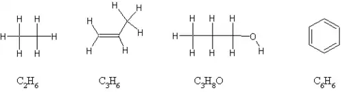 Kulstof kan danne flere typer af kovalente bindinger. Det er enkelt-, dobbelt- og tripelbindinger og den slags bindinger der findes i aromatiske ringe. For at kunne klassificere alle disse forbindelser er der lavet en systematisk navngivning under organisationen IUPAC. De systematiske navne kan hurtigt blive uoverskuelige, specielt for store molekyler og molekyler der indeholder mange forskellige funktionelle grupper, og suppleres typisk af en tegning som de viste. De viste er dog meget primitive og organiske forbindelser tegnes oftes som stregtegninger hvor der sidde et kulstofatom i hvert knæk på stregen:
