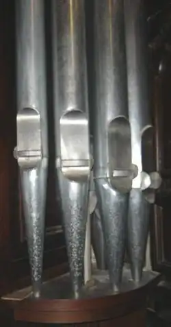 - Gedakt – sprød klang, svagere stemme