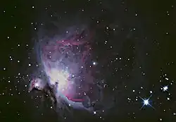 Oriontågen (M 42 og NGC 1976) er en sky af gas og støv i verdensrummet. I denne tåge opstår der nye stjerner.