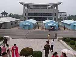 Grænsen er anset som en af de sidste rester fra den kolde krig. Samtaler mellem nord- og sydkoreanske myndigheder foregår i de lyseblå bygninger, som er beliggende i Panmunjom.