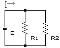 Et simpelt kredløb kan fx bestå af en strømkilde og to parallelforbundne modstande 1 og 2.
