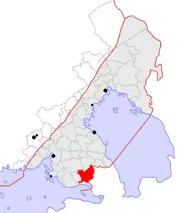 Beliggenhed for Kivinebb kommune i den del af Vyborgs län, som blev afstået til Rusland i 1944.