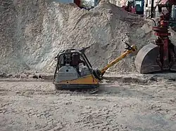 Maskinen har som regel en benzindrevet motor der driver et svinghjul. Ved hjælp af ujævn vægtfordeling i svinghjulet får man bundpladen til at vibrere, og denne vibration ryster underlaget sammen ved at de mindre korn falder ned i hulrum mellem de større korn. Håndtaget er affjedret for at modvirke at vibrationerne overføres direkte til arbejderen, men en del vibration kan ikke undgås, og det anbefales at holde pauser jævnligt og ikke arbejde for mange timer om dagen med maskinen. Som regel er høreværn påbudt.