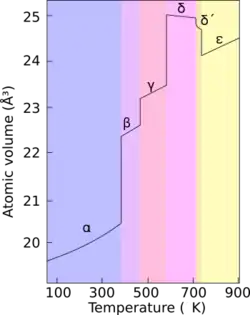 Under normalt tryk har det seks allotropiske former, og ved højere tryk en syvende form; alle med forskellige massefylder. Det betyder at stoffet er følsomt overfor variationer i omgivelsernes tryk, temperatur og kemi, og at det kan undergå store udvidelser eller sammentrækninger når grænsen mellem to allotrope former overskrides. Når man bruger plutonium til nukleare formål, er det gerne i form af en legering sammen med gallium, som gør plutonium i δ-formen nogenlunde stabilt.
