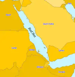 - Vestsiden fra syd til nord: Djibouti, Eritrea, Sudan, Egypten