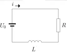 hvor er spolens induktans. Hvis modstanden og spolen forbindes i serie med en strømkilde med spændingen gælder ligheden: