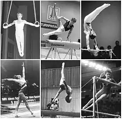 - Barre er en disciplin, hvor kvinder svæver fra stang til stang (se billag højre nederst) men senere er der dog blevet større mellemrum fra stang til stang. I redskabsgymnastik i pro-verdenen rater man ved at alle har en startscore alt afhængigt af hvad sværhedsgraden var. Man kan få 0.100 hvis man ikke rammer en håndstand og så er der landingen som er en stor del.