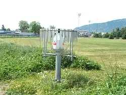Regnmåleren bør placeres på en åben plads ca. 2 meter over jorden, og skærmes bedst mulig for vinden.
