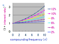 Hvis man antager at rentefoden er konstant, og renteudbetalingerne sker med regelmæssige mellemrum, kaldet terminer, kan man beregne det beløb som en vis, oprindelig, kapital er "vokset til" efter et vist antal af disse terminer, idet:[1][2]
