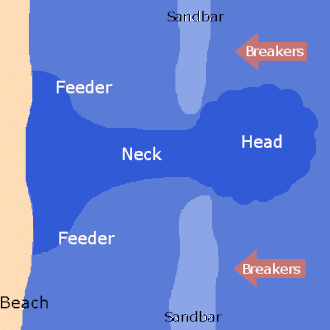 Badende vil ved et revlehul – i sjældne tilfælde – kunne blive ført med strømmen ud på dybt vand. Strømmen er så kraftig (2-8 km/t), at det man instinktivt vil gøre – svømme mod land – er virkningsløst. Selv dygtige svømmere kan ikke klare det. Man skal slappe af og i stedet enten svømme langs kysten, så man kommer bort fra den udadrettede strøm, eller blot holde sig flydende. Så kan man måske svømme i land et sted hvor der ikke er udadrettede strøm.