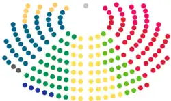 | Parti | Pladser | Ændring siden sidste valg | % af pladser | % af stemmer |