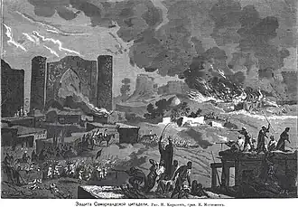 En redegørelse for den russiske erobring af Tasjkent blev skrevet i "Urus leshkerining Türkistanda tarikh 1262-1269 senelarda qilghan futuhlari" af Mullah Khalibay Mambetov. [2][3]