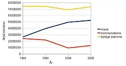 - Antallet af gyldige stemmer syntes at være nogenlunde konstant med undtagelse af 2004.