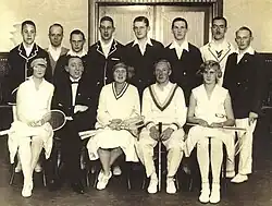 Strollers 1928, stående: V. N. Goldsmith, H. Schrader, A. Hansen, O. L. Goldsmith, S. Raaskow, Braha Christensen, G. E. Stewart, H. Hansen; siddende: Mrs. Dickie, C. Claussen, Mrs. Horsley, Major J. D. M. McCallum, Ruth Frederiksen