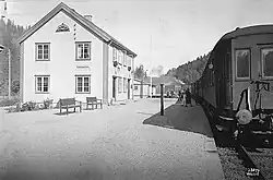 Stationsbygningen blev opført efter tegninger af Gudmund Hoel og Bjarne Friis Baastad ved NSB Arkitektkontor i 1926. Bygningen bruges i dag til erhverv. Sporene ved stationen er taget op.
