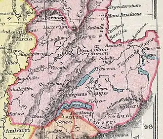 - ↑ Butler, Samuel; Rhys, Ernest (1907). "Map 4, Gallia". The Atlas of Ancient and Classical Geography. Everyman. London; New York: J.M. Dent; E.P. Dutton.