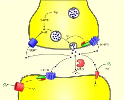 Serotonin eller 5-Hydroxytryptamin, 5-HT er et multifunktionelt signalmolekyle, en monoamin neurotransmitter. Den biologiske funktion af serotonin er kompleks og mangesidig: modulerende humør, tankeprocesser, belønning, læring, hukommelse, migræne og talrige fysiologiske processer såsom opkastning og vasokonstriktion.[1][2]