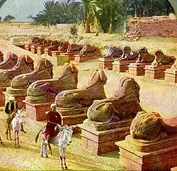 I Egypten fremstilledes sfinksen med løvekrop og menneskehoved, der blev opstillet som vogter af templer og pyramider, som eksempelvis Sfinksen i Giza.