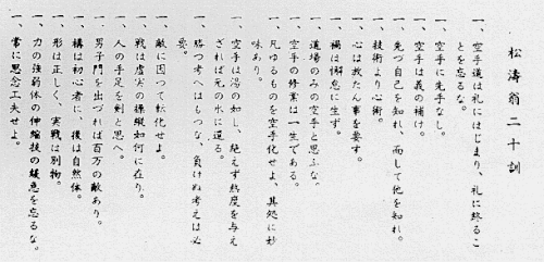 - ↑ JKA, Official site. "'The Twenty Precepts of Karate". Hentet 16. juli 2006.
