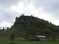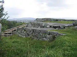 Arkæologiske udgravningerne fra 1936 og 37 viste at borgen havde indgang mod syd gennem et kraftig porttårn. På hver side af tårnet lå en stenbygning, det ene hus var højst sandsynlig Kongens hal og kammer. Rundt om resten af fjeldplateauet (50 x 80 meter) var der bygget en solid ringmur. Man går ud fra at der var flere bygninger på plateauet, enten fritstående eller langs ringmuren, bygget i træ og med tørvetag.