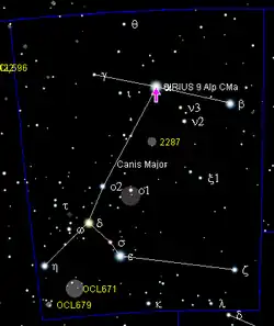 Sirius (eller Alfa Canis Majoris) er himlens klareste stjerne og hovedstjernen i stjernebilledet Store Hund. Af den grund kendes den også som Hundestjernen. Sirius, som befinder sig 8,61 lysår fra vores eget solsystem, er en dobbeltstjerne; den synlige stjerne og en yderst svag "ledsagestjerne" kredser rundt om hinanden. Ledsageren hedder formelt Sirius B, men omtales også som Hvalpen.