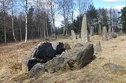 - Gettlinge gravplads på Öland består af mere end 200 grave, hvor de fleste er skibssætninger, bl.a. en 30 m lang skibssætning, der består af 23 opretstående granitblokke ved siden af hinanden.56°23′18″N 16°26′6″Ø / 56.38833°N 16.43500°Ø